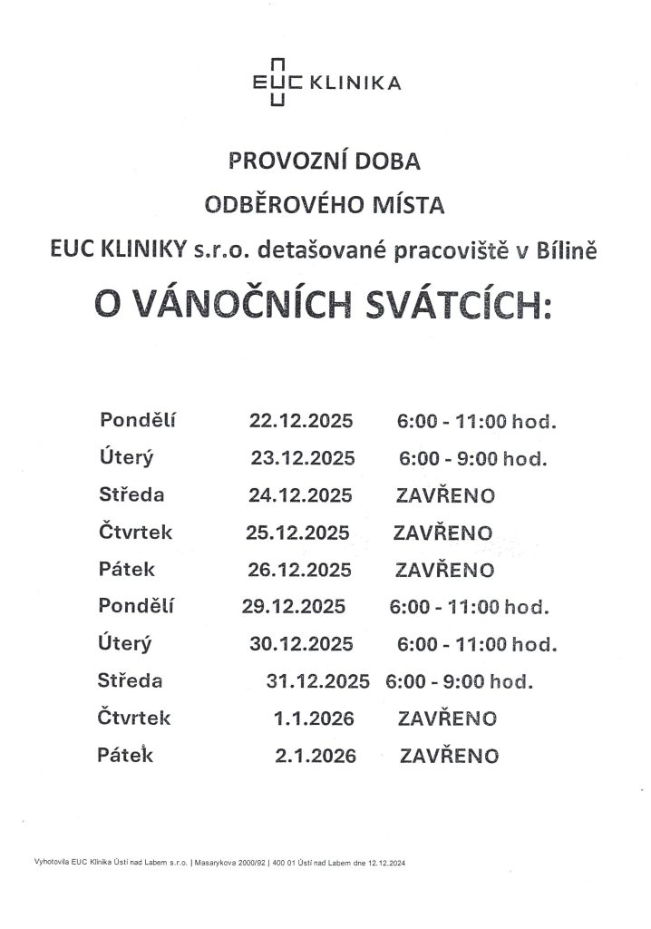 Pro aktuální informace sledujte naše webové stránky www.hnsp.cz či se informujte na recepci na tel. 417 777 111.